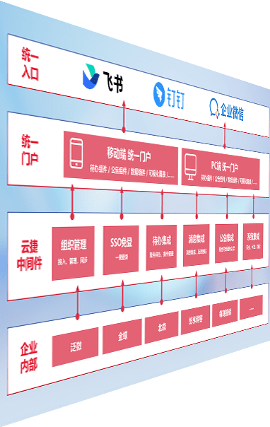 对协作平台提供支持服务,,,,支持企业应用与协作平台对接,,,,包含组织同步、、、消息集成、、、、待办集成等。。支持目前主流的协作平台:钉钉、、企微和飞书。。